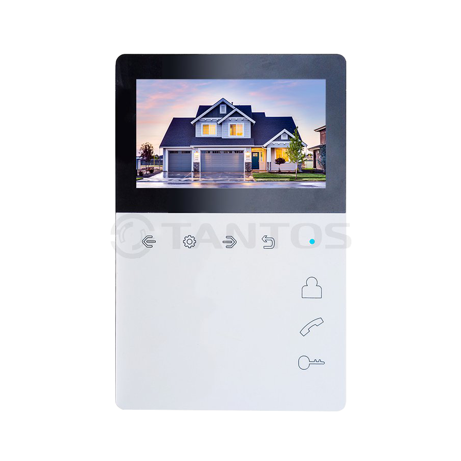 Монитор домофона с экраном 4,3 дюйма со встроенным блоком питания. Всё управление осуществляется сенсорными кнопками.