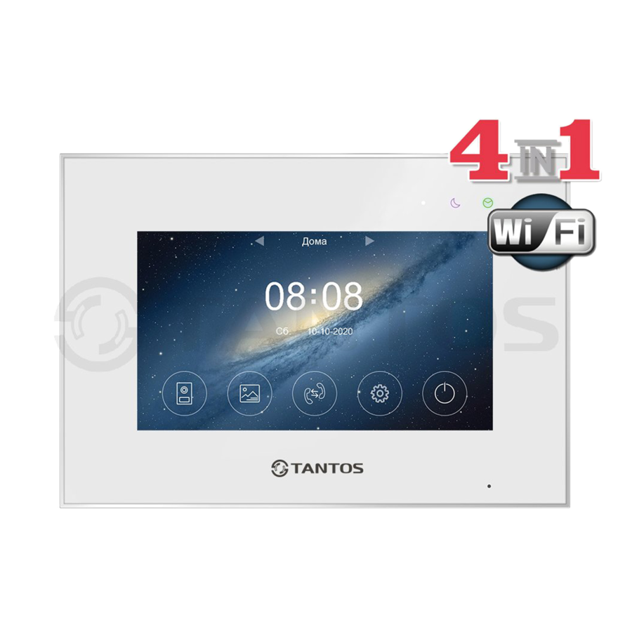 Монитор цветного видеодомофона 7 дюймов с емкостным сенсорным экраном с поддержкой форматов AHD/TVI/CVI 1080p/720p, CVBS (PAL), с возможностью отправки уведомлений о вызове в мобильное приложение "vhOme 2.2" , удаленный просмотр на смартфоне происходящего у вызывной панели, удаленное управление замками, подключенными к вызывным панелям.